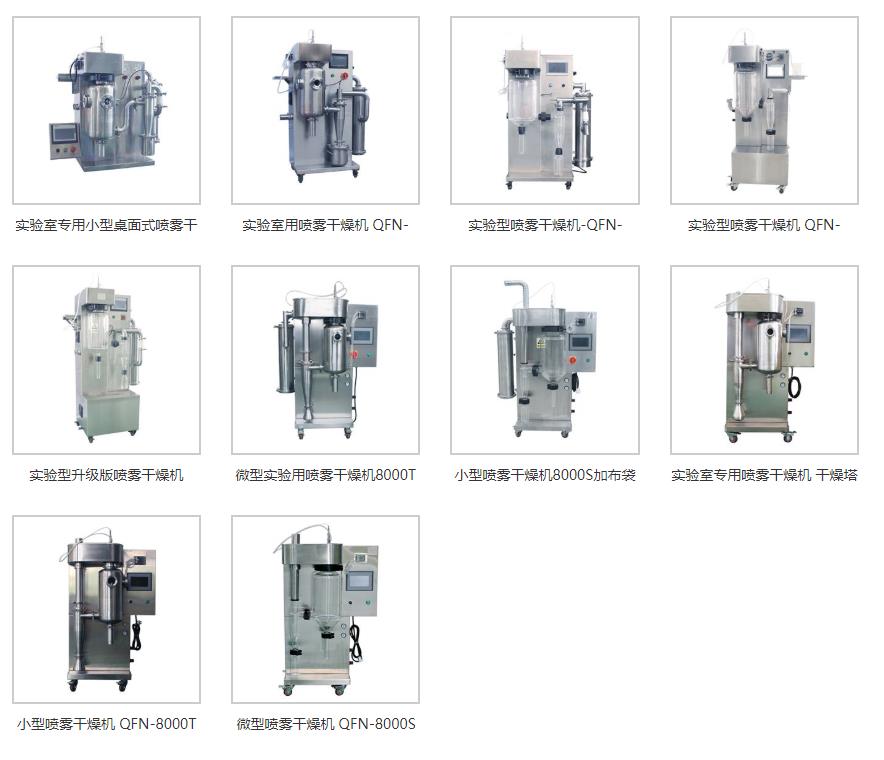 普通實驗型噴霧干燥機型號大全有:QFN-8000S QFN-8000T QFN-8000N QFN-8000ST QFN-9000Y QFN-9000YZ QFN-9000Z 更多